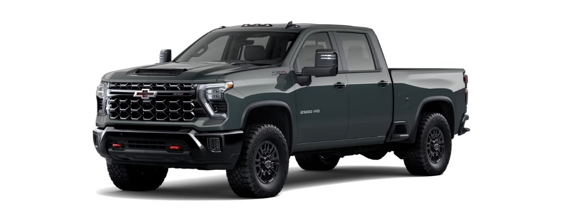 Le ZR2 adapte le Silverado aux terrains difficiles. Il est équipé du moteur V8 Duramax Turbo, de suspensions Multimatic DSSV, d’un différentiel bloquant et de pneus spécifiques. Le prix débute vers 103 425 $.